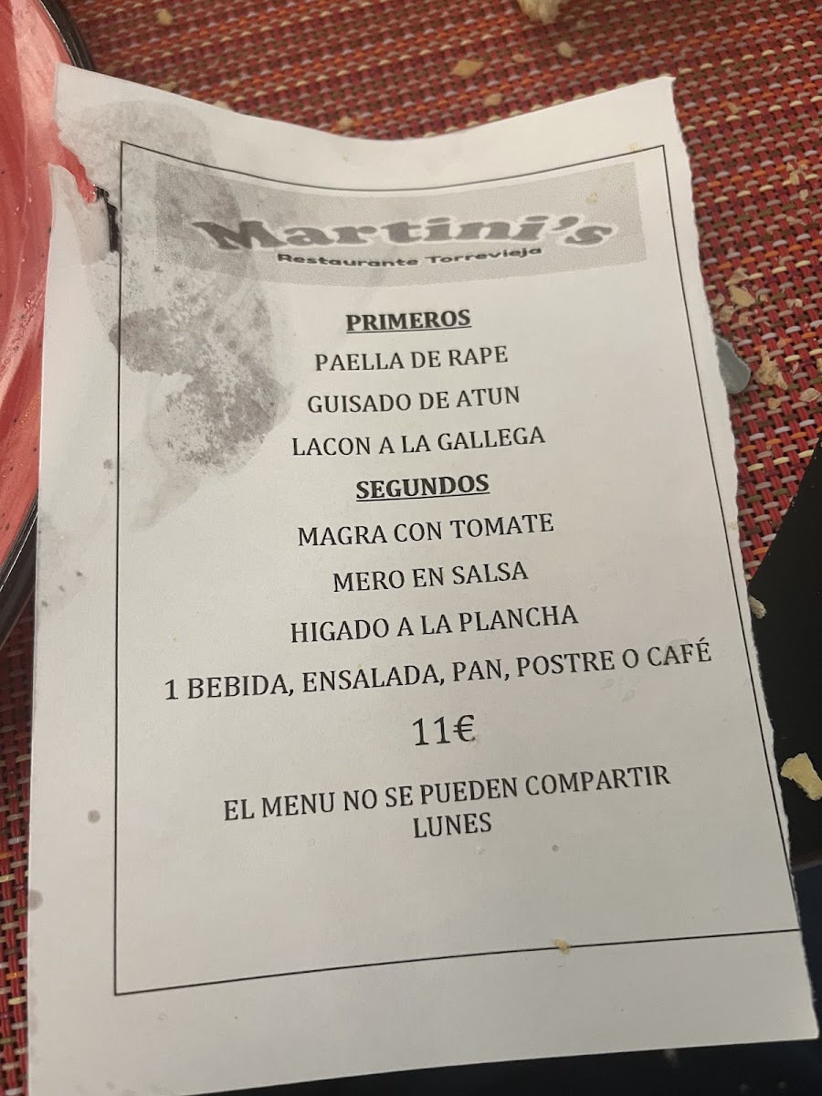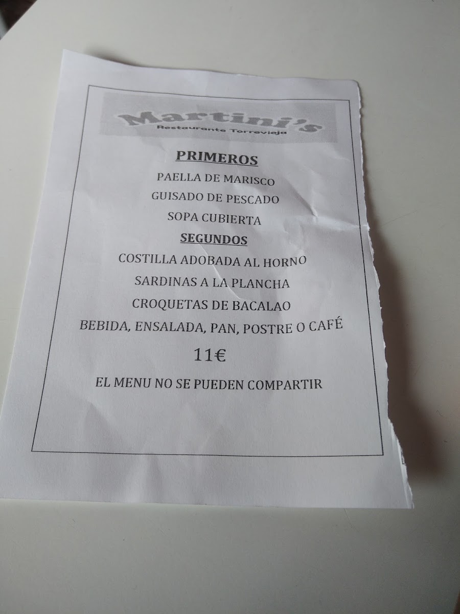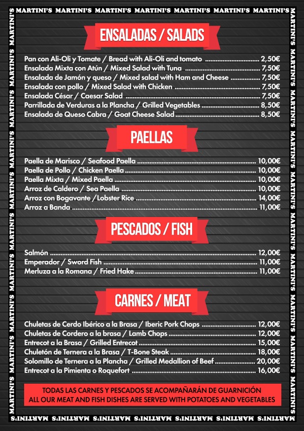 Restaurante Martini's Menu